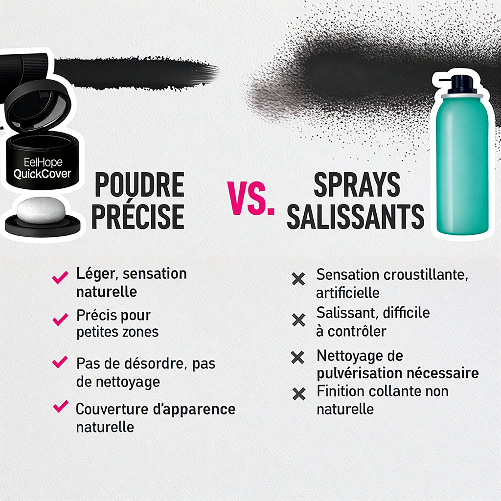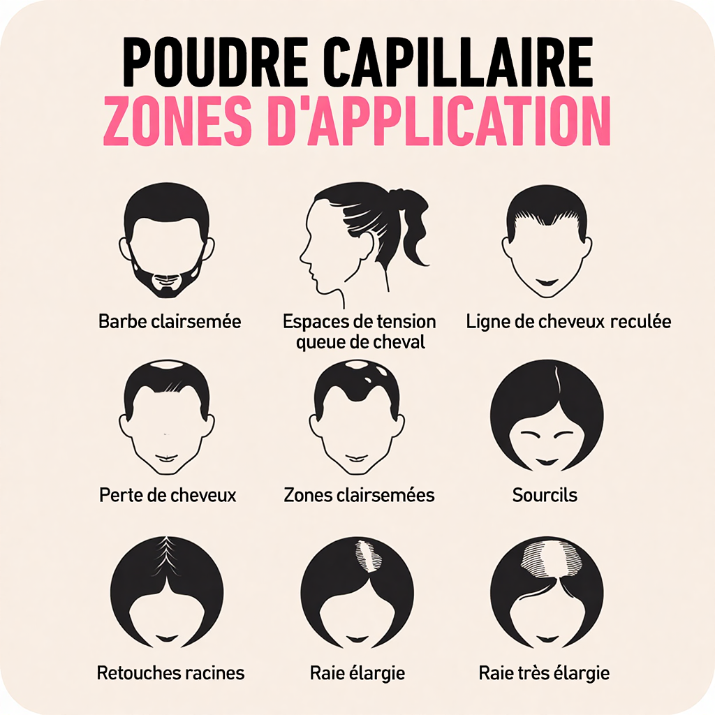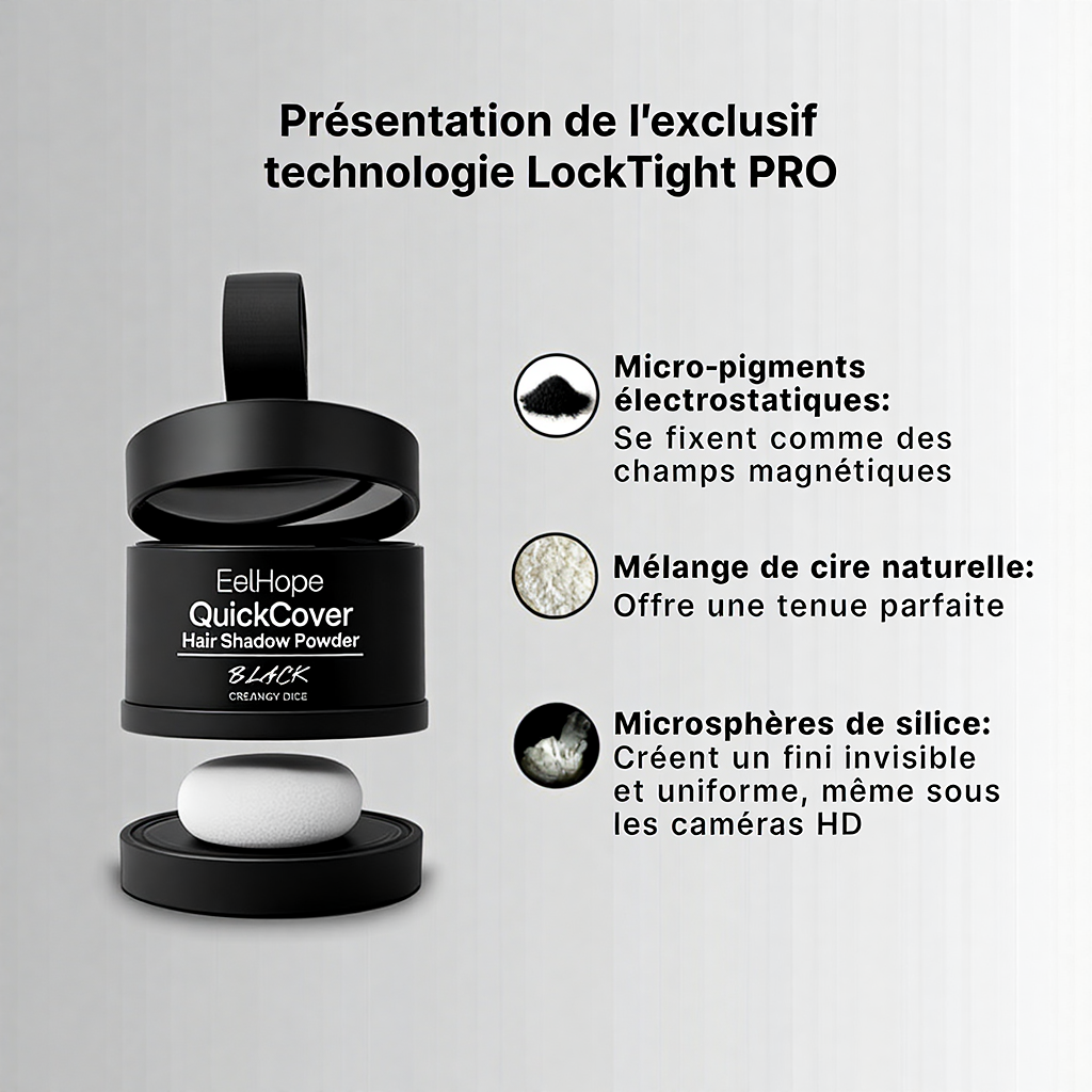 Facile et discret. Micro-pigments qui se fixent aux cheveux pour un rendu naturel, même sur photos.